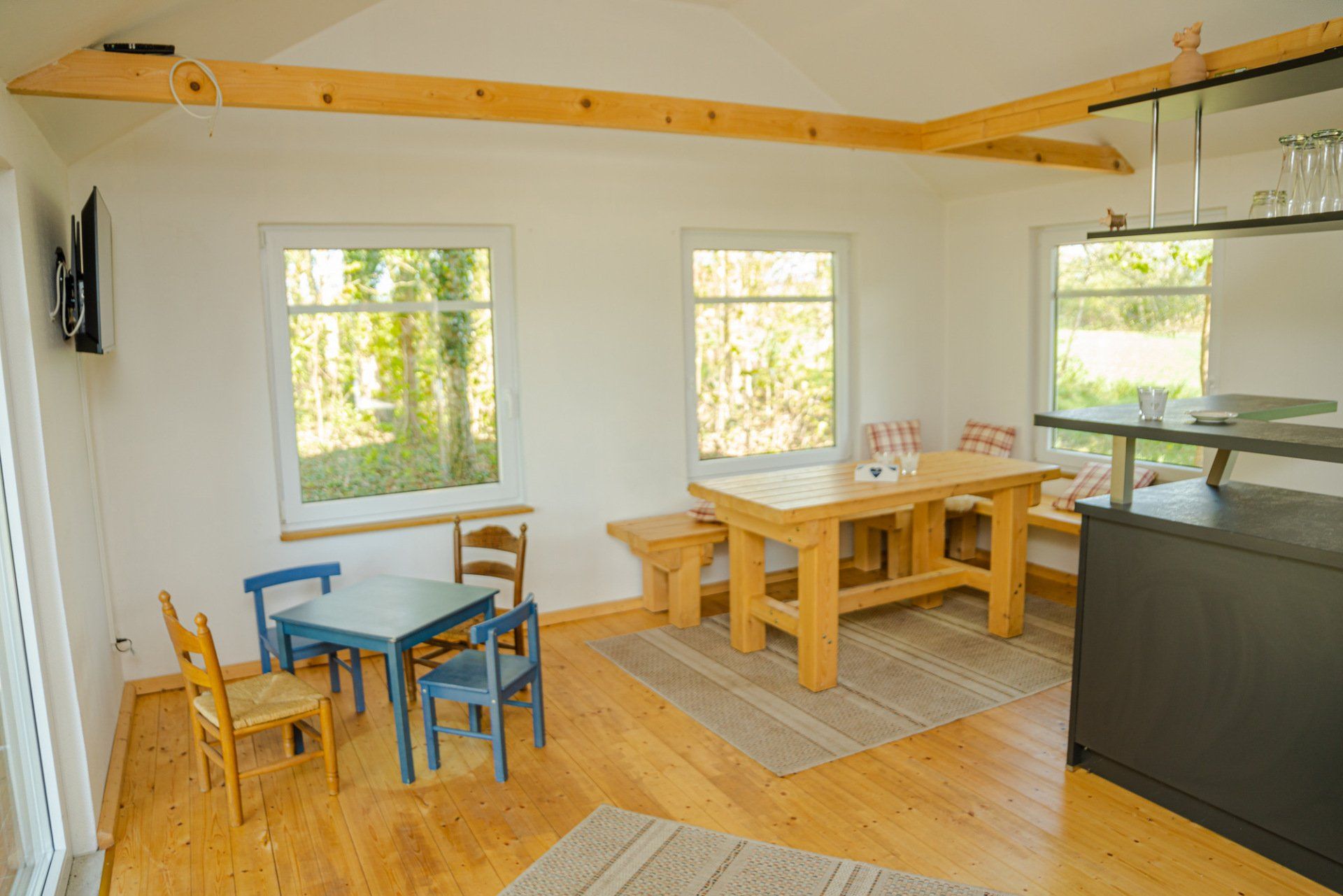 finden bis zu 7 Personen Platz. Auf dem Grundstück befindet sich ein Naturteich