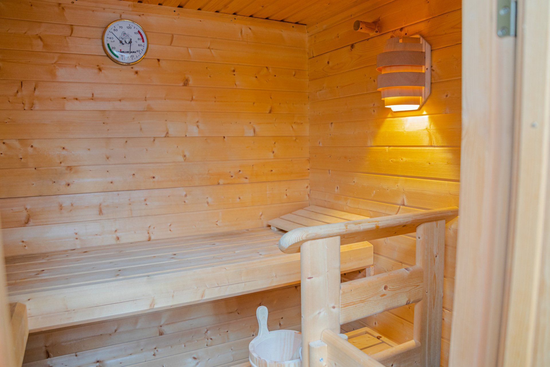 zum schwimmen sowie ein gemütlicher Saunabereich mit überdachter
